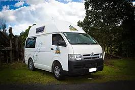 ab 70 NZD - Compakter, wendiger 2‑Personen Campervan mit Heckküche, Doppelbett und Selbstversorgungs‑Zertifikat – ideal für unabhängige Neuseeland-Roadtrips.