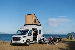 ab 60 NZD - kompakter self‑contained 2‑Personen Campervan mit Slide‑Out Küche, Doppelbett, Toilette und Solar‑Power – perfekt für Freedom Camping in Neuseeland